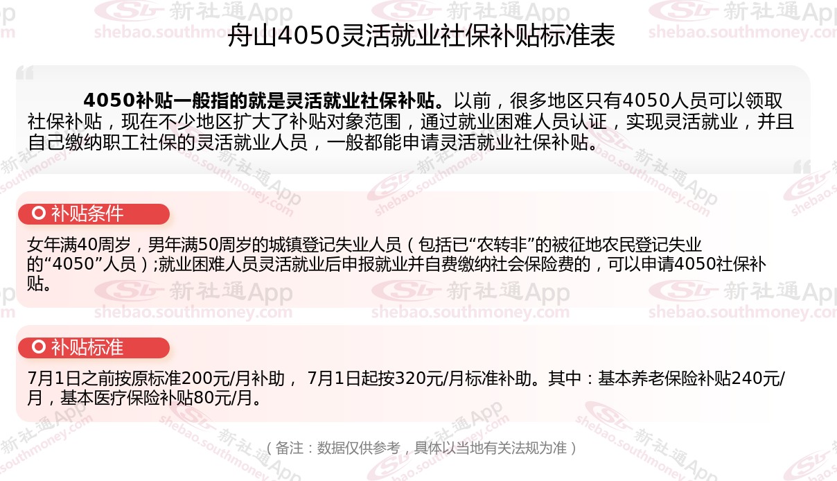 一、2025年舟山4050社保补贴标准是怎么样的,附领取条件