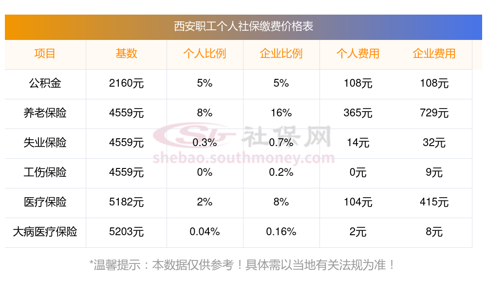 据新社通小编了解到,西安职工社保缴费基数为:4559.00,个人费用约为:364.72元,企业费用约为:729.44元。