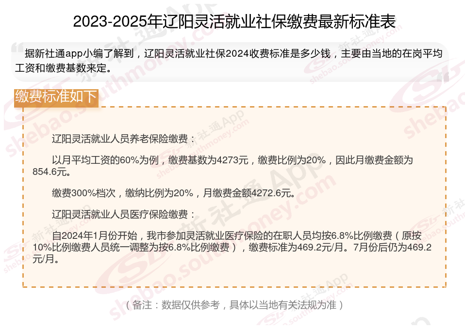 辽阳2025年灵活就业人员社保缴费标准公布