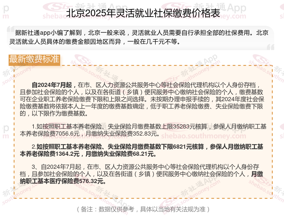 个人灵活就业社保养老、医保缴费标准2025最新,北京灵活就业社保每月交多少钱?