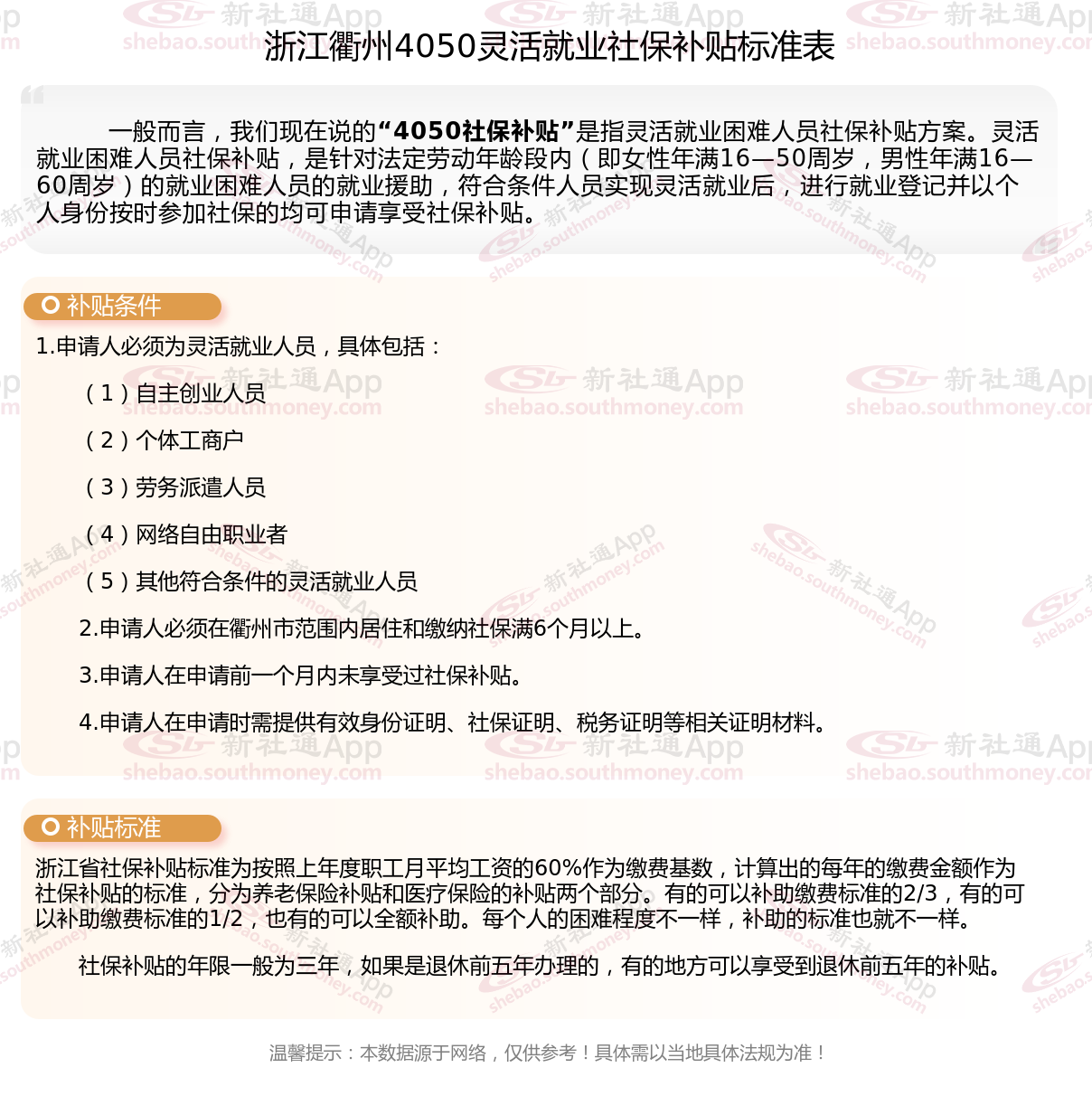 一、2025年浙江衢州灵活就业4050社保补贴标准是多少?申请条件是什么?