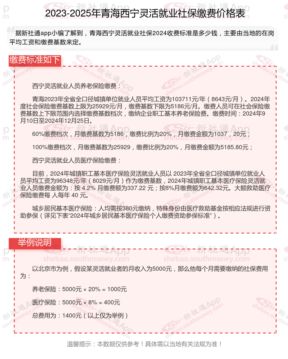 随着经济社会的不断发展,灵活就业群体日益壮大,其社保缴费问题也愈发受到关注。那么2025年青海西宁灵活就业人员社保需要交多少钱,缴费比例是多少?下面随新社通小编一起来看看。