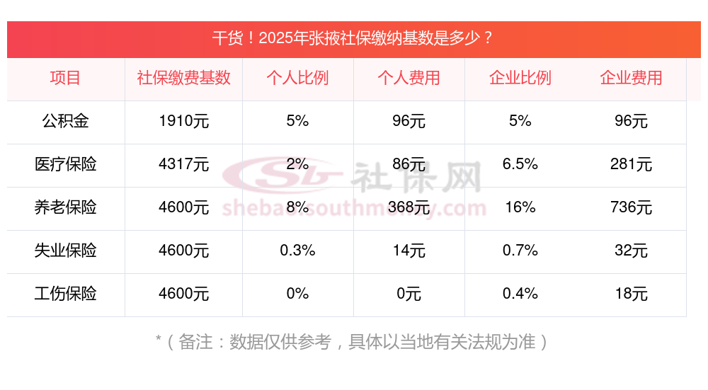 张掖社保缴费基数标准 2025年张掖社保是多少钱一个月?据新社通小编了解到,确定社保缴费基数,主要以上一年度职工的月平均工资为基准,同时结合当地社会平均工资60%至300%的上下限标准进行相应调整。 目前,张掖社保缴费基数为:4600.00,个人费用约为:368元,企业费用约为:736元。
