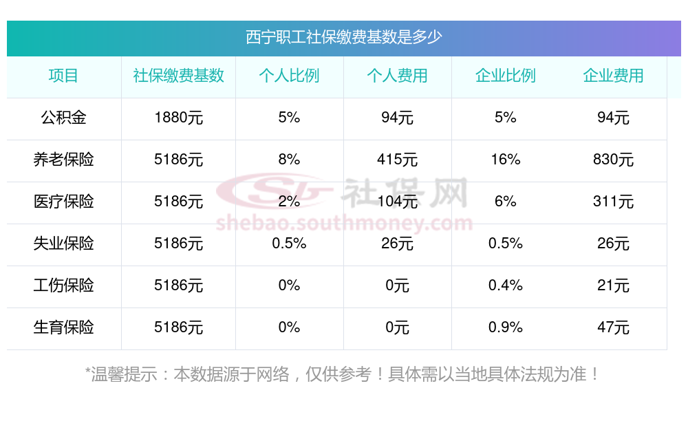 2025年西宁职工社保缴费基数是多少钱一个月?职工社保缴纳标准是多少?