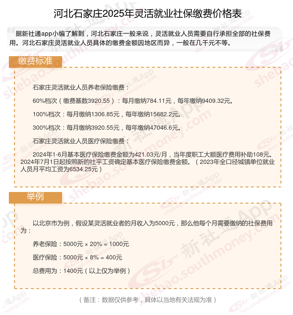 一、河北石家庄灵活就业社保多少钱一个月?河北石家庄灵活就业社保缴费标准表