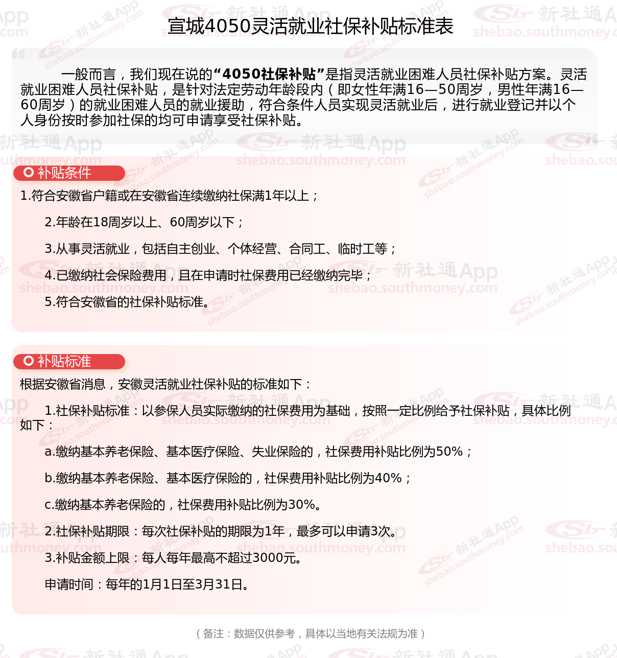 二、2025年宣城灵活就业4050社保补贴标准及条件是什么