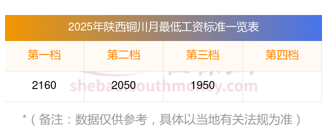 陕西铜川最低工资标准参考最新如下: