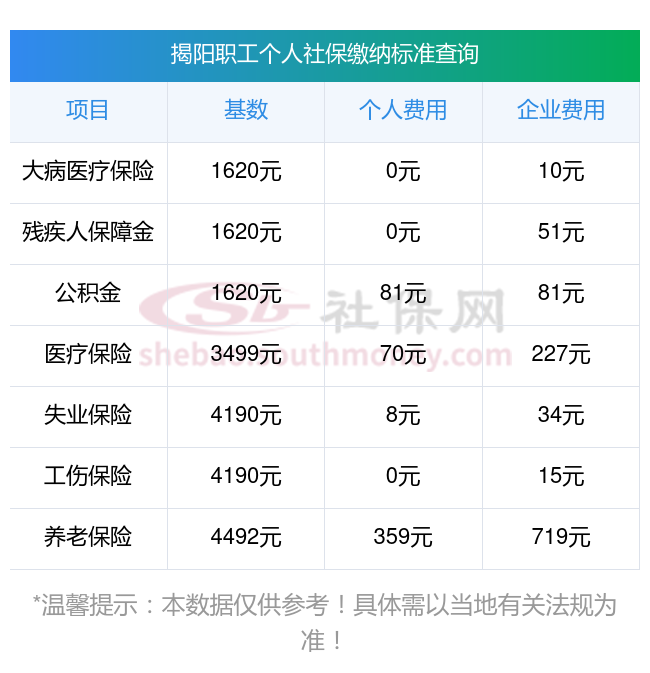 一、揭阳职工社保缴费基数是多少钱一个月?职工社保缴纳标准是多少?