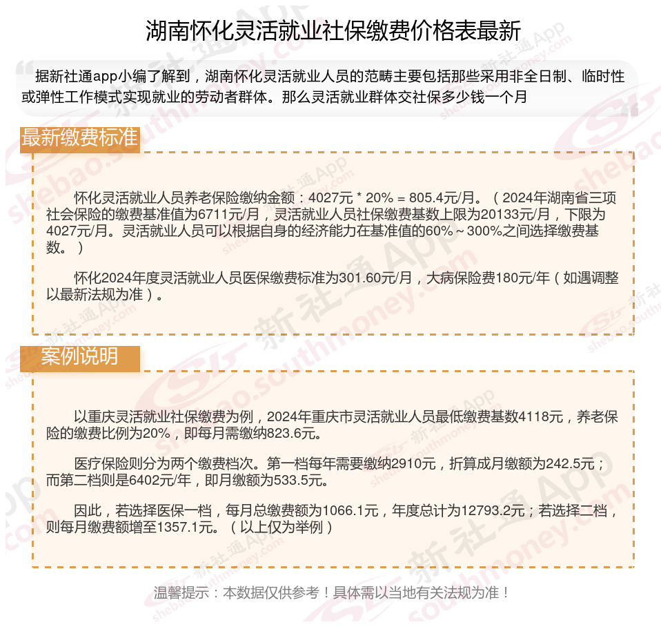 湖南怀化灵活就业社保缴费标准来了 灵活就业社保最低要交多少钱?根据新社通app-社保缴费查询工具提供的最新数据如下:
