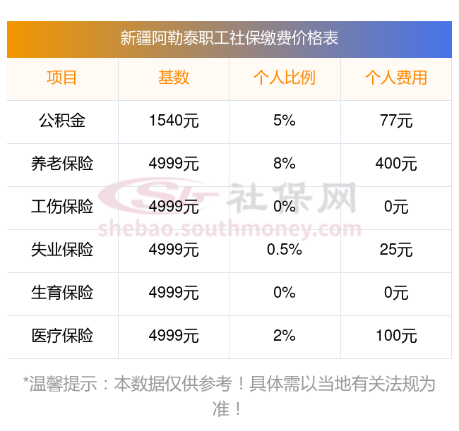 一、新疆阿勒泰社保缴费比例是多少?职工个人社保缴纳比例如下