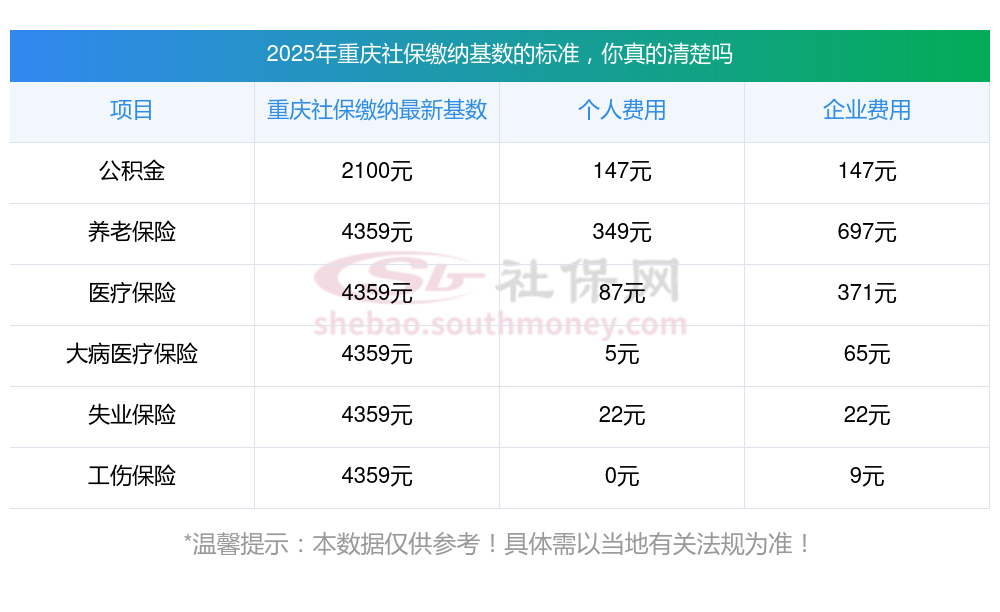 用于计算社保费缴纳工资基数的社保基数,其确定依据为职工上一年度1月至12月所有工资性收入所得的月平均额。那么,重庆社保缴费基数2025年是多少?下面随新社通app小编一起来了解具体内容。