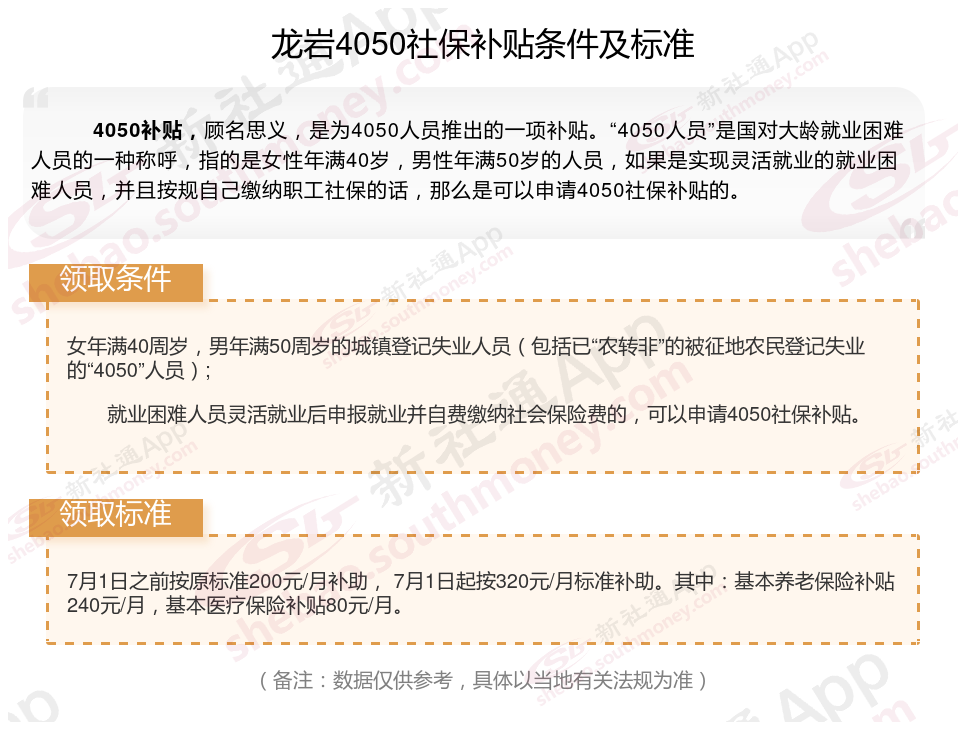 2025龙岩4050补贴主要针对的是年龄在40岁以上的女性和50岁以上的男性,这些人群通常因为年龄较大而面临就业困难。