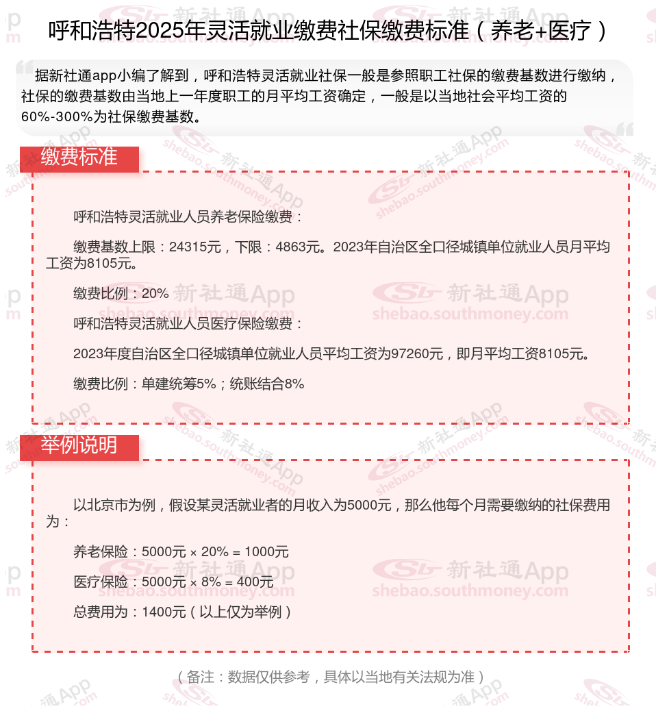 二、呼和浩特2024年灵活就业社保缴费基数、比例最新消息