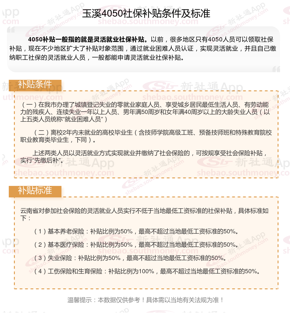 二、2025年玉溪4050社保补贴标准是多少?条件是什么?