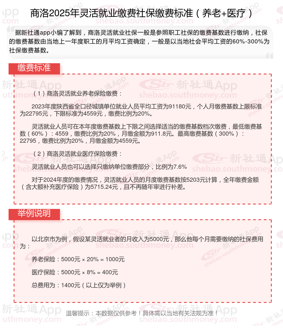 2025灵活就业社保缴费标准的调整,既体现了法规的连续性,又适应了经济社会发展的要求。灵活就业人员应根据自身情况,合理选择缴费基数和缴费比例,确保自身权益得到充分保证。那么2025年商洛灵活就业人员社保需要交多少钱,你了解2025年商洛灵活就业人员社保缴费基数及比例吗,接下来随新社通APP小编一起来看看。