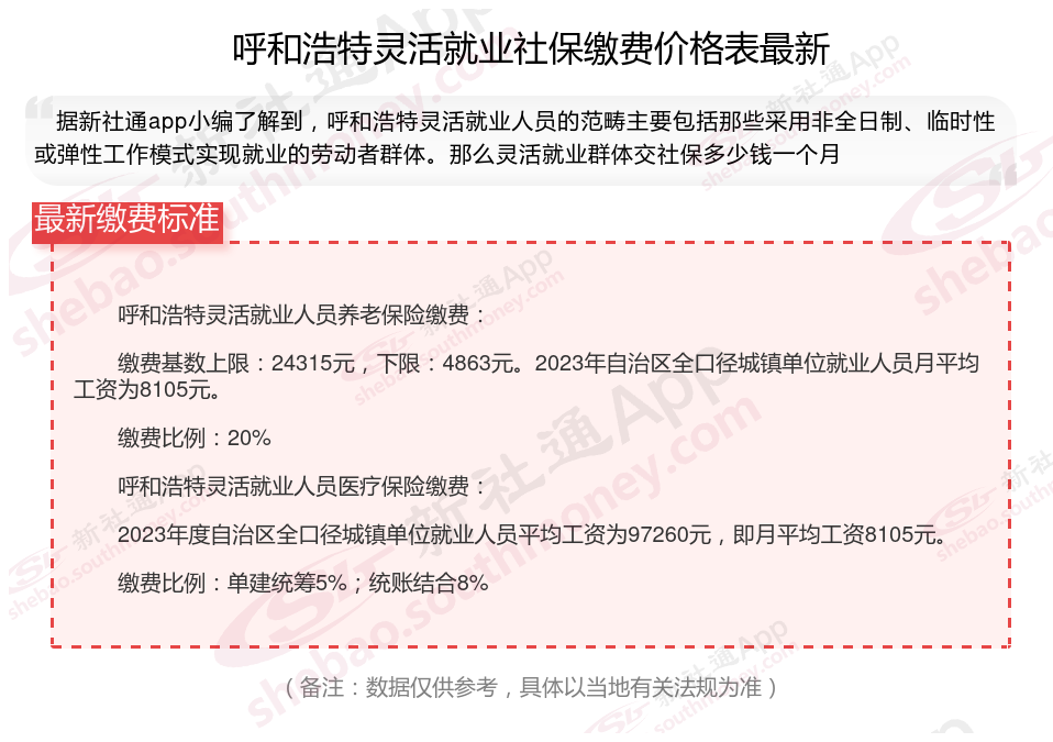 二、2024年呼和浩特灵活就业社保缴费标准,最新如下: