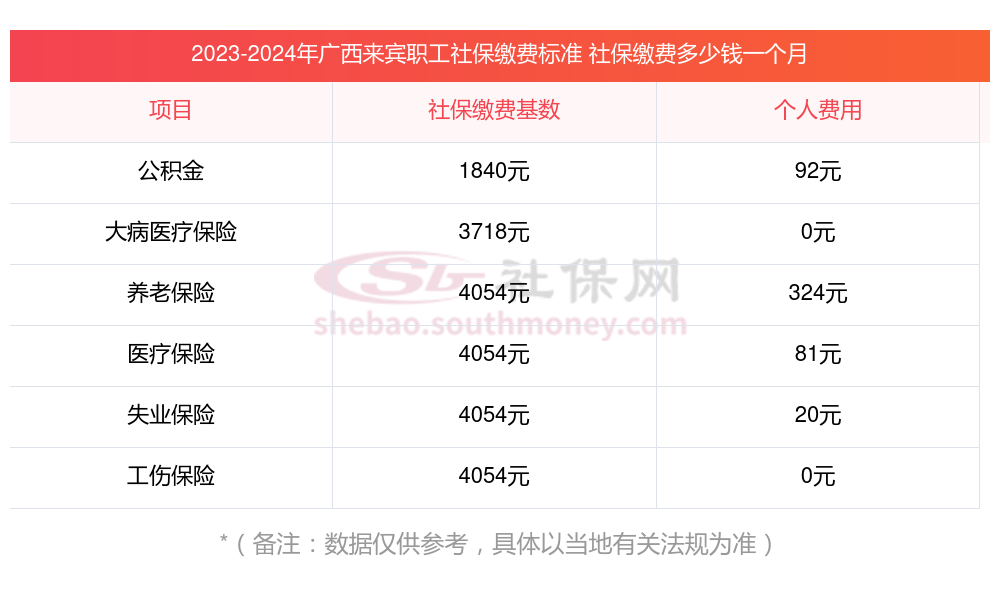 社保公司需要缴纳多少?以广西来宾为例: