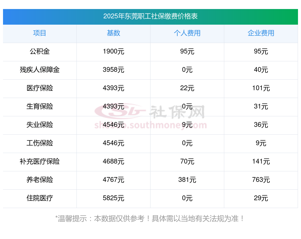 2025年东莞职工社保缴费基数是多少钱一个月?职工社保缴纳标准是多少?
