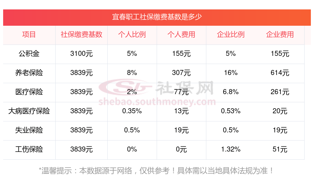 据新社通app显示,宜春社保缴费基数公积金缴费基数为:3579.00元,(2025社保最低一个月要交多少钱)宜春社保费用如下: