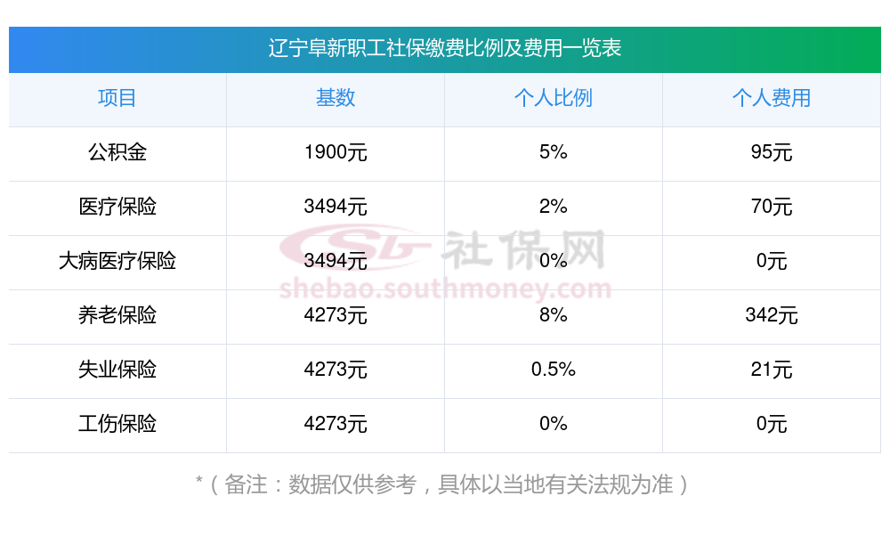辽宁阜新职工社保缴费多少钱?辽宁阜新职工社保缴费基数最新参考为:3579.00,具体如下: