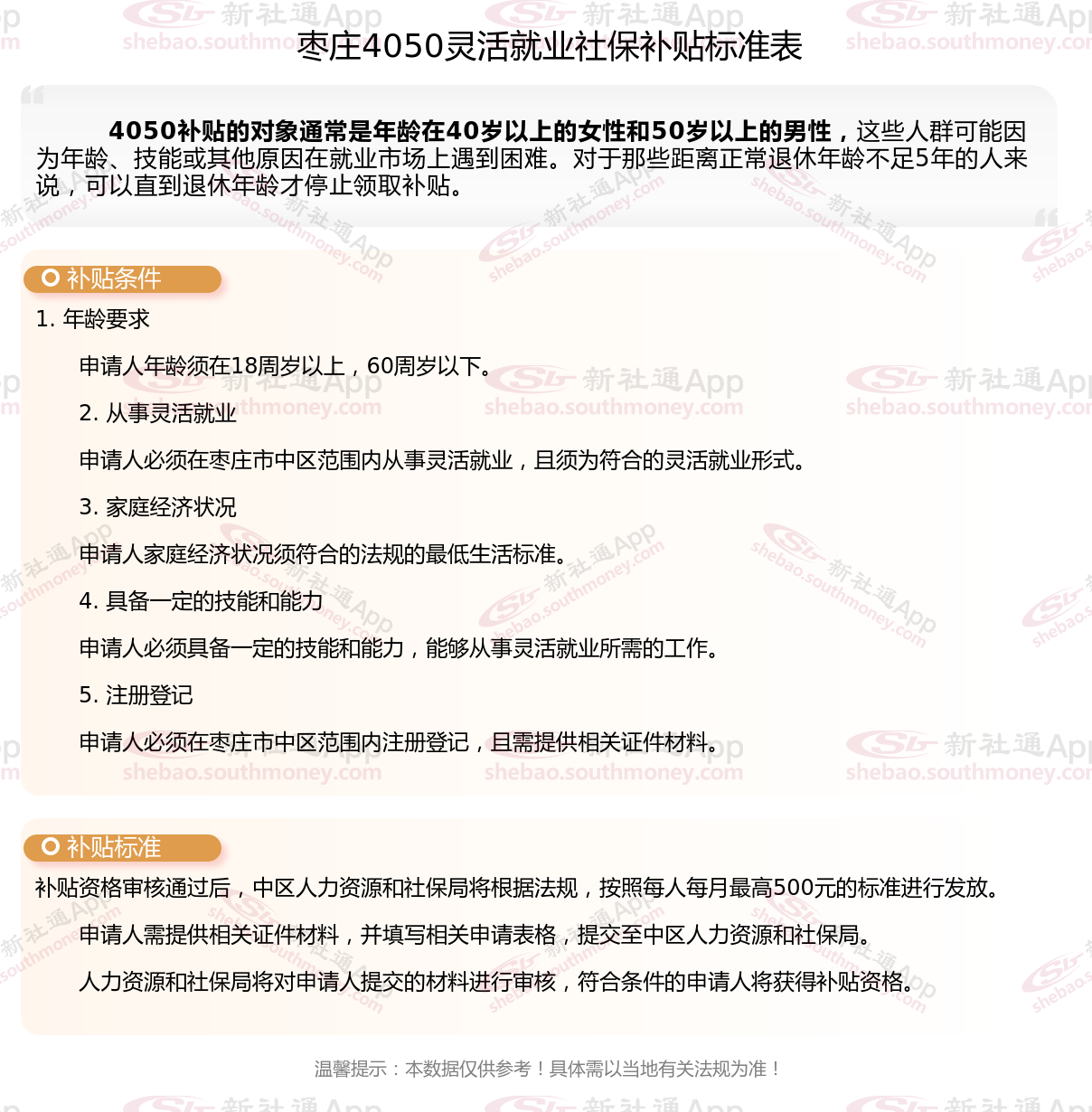 二、枣庄4050社保补贴标准及条件2025年最新消息
