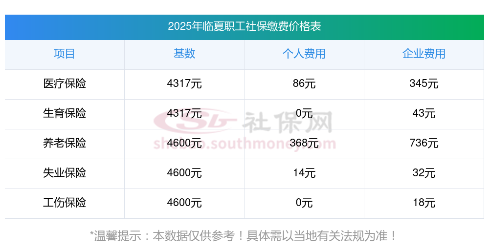 据新社通app显示,临夏社保缴费基数2025标准,(社保最低一个月要交多少钱)临夏社保费用如下: