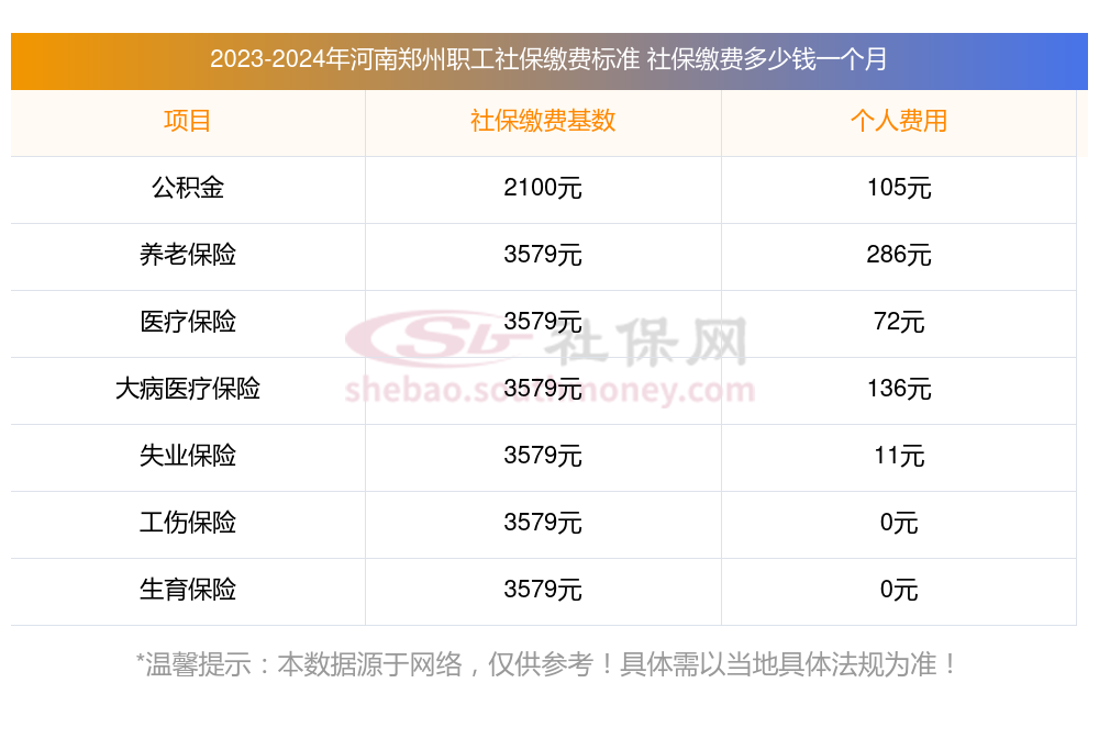 河南郑州社保公积金缴费基数为:3579.00。