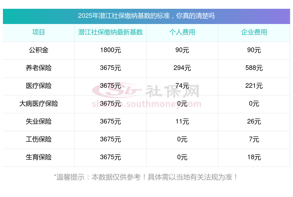 一、据新社通小编了解到,确定社保缴费基数的方法是,依据职工上一年度月平均工资,再结合当地社会平均工资上下限(60%-300%)的范围进行调整。 目前,潜江社保缴费基数为:3675.00,个人费用约为:294元,企业费用约为:588元。