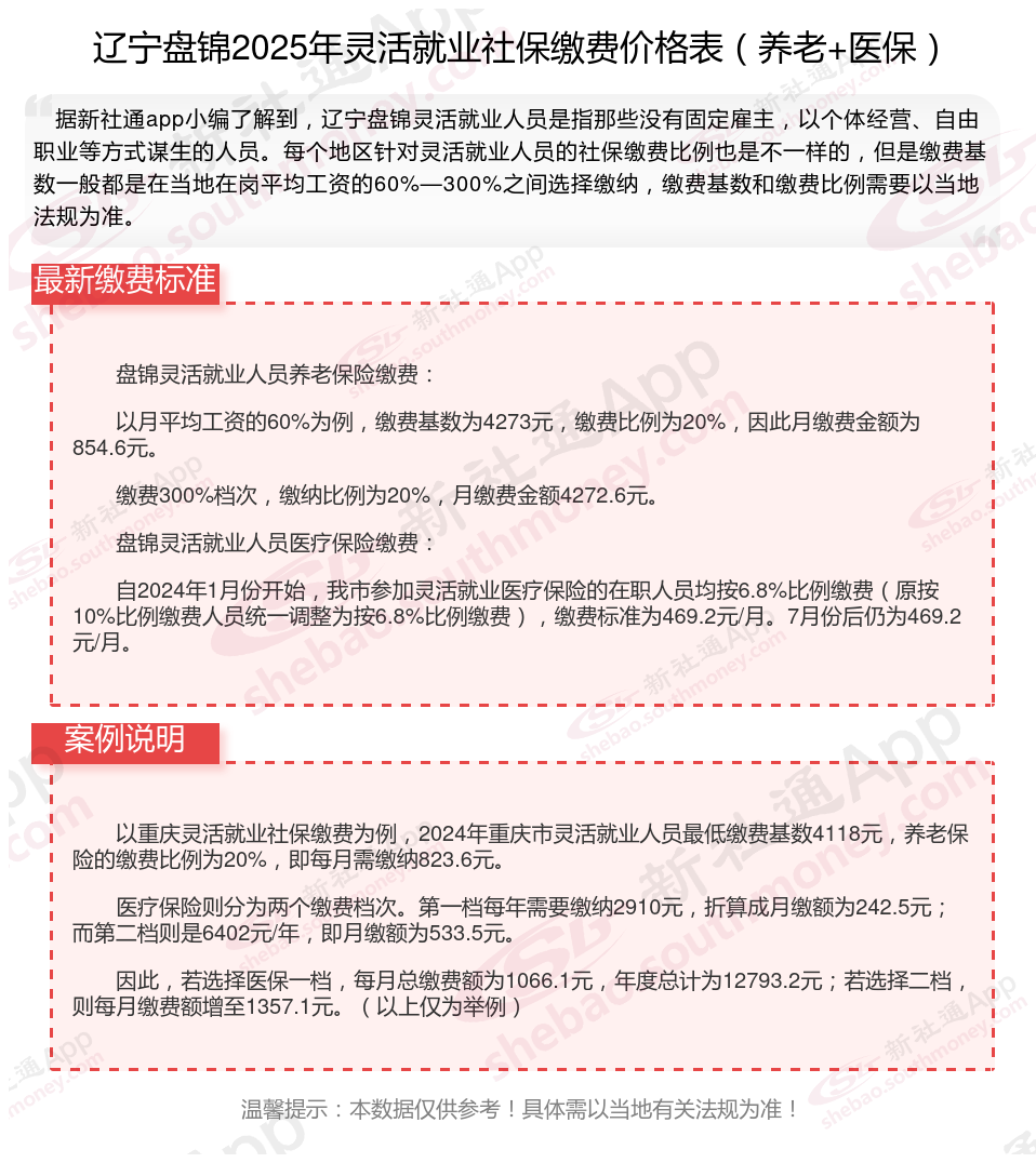 2025年灵活就业社保最低要交多少钱?辽宁盘锦灵活就业人员养老、医疗缴费最新明细来了,辽宁盘锦灵活就业社保每月交多少钱?