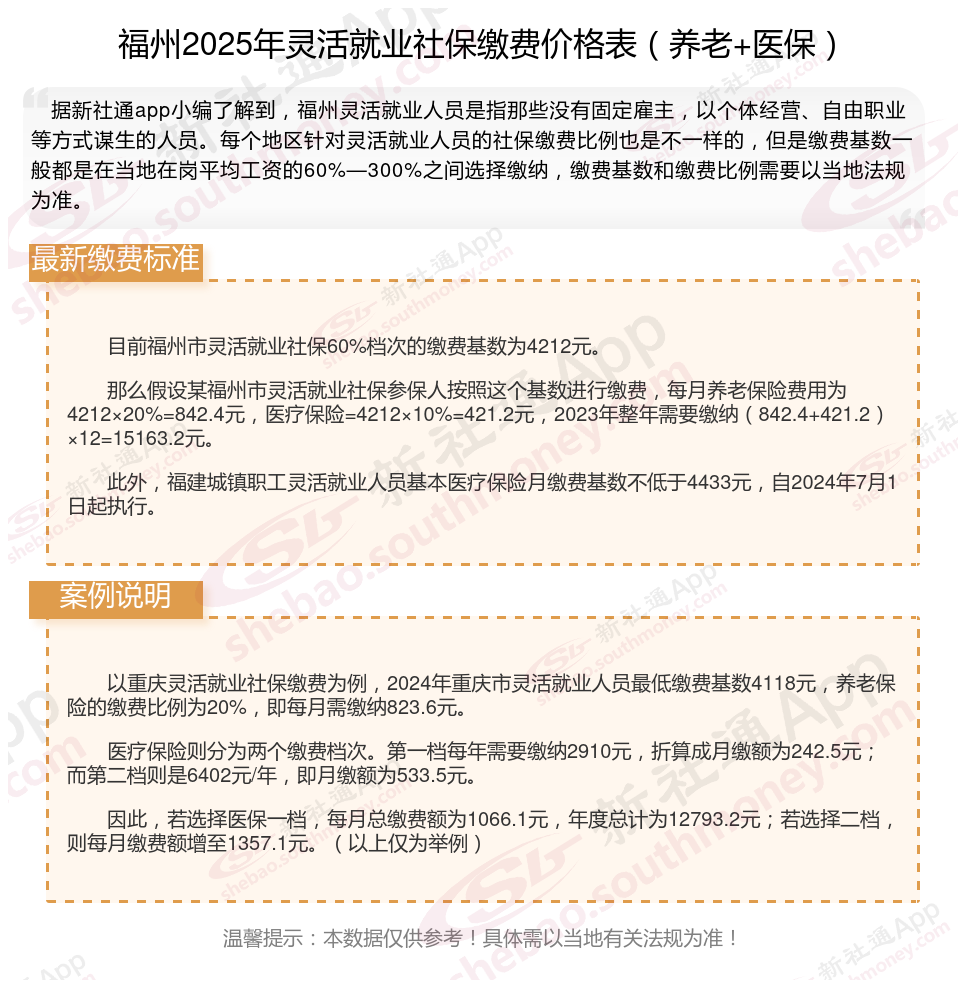 对于灵活就业者来说,社保缴纳是一个非常重要的问题。那么,2025年福州灵活就业社保怎么交?一个月要交多少呢?领取待遇如何计算的?接下来随新社通APP小编一起了解福州灵活就业社保缴费具体详情吧。