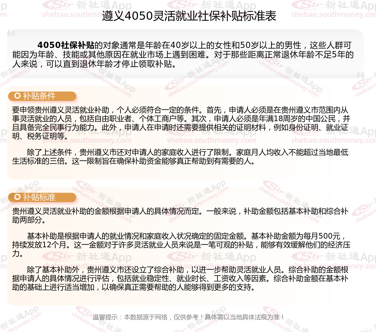 二、2025年遵义4050社保补贴标准及条件,最新如下: