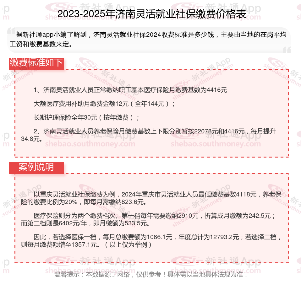 据新社通app数据显示,济南灵活就业人员养老缴费基数2024-2025年最新标准如下: