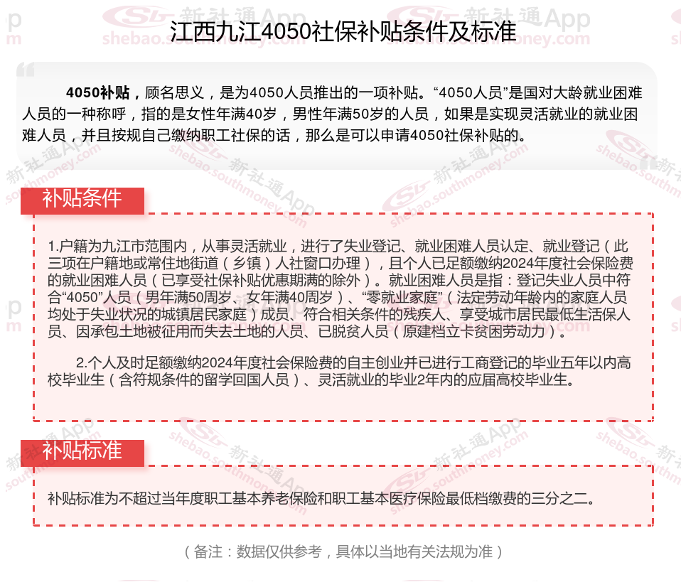 一、2025年江西九江灵活就业4050社保补贴标准最新是多少?
