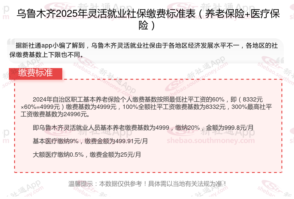 2025年灵活就业社保最低要交多少钱?灵活就业人员社保缴费最新明细来了~根据新社通app-社保缴费查询工具提供的2025社保缴费标准详情数据: