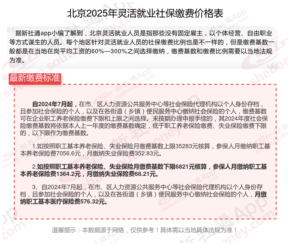 二、2024年北京灵活就业社保缴费标准表 北京灵活就业社保多少钱一个月?