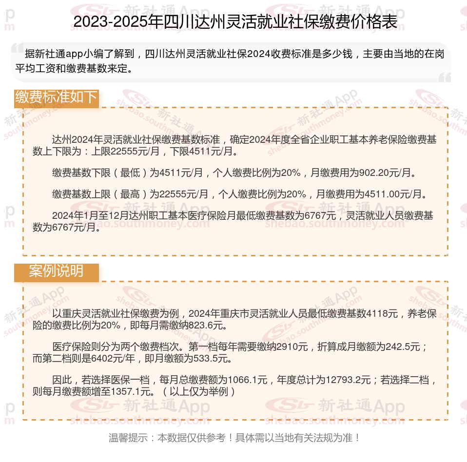 一、2024-2025年四川达州灵活就业社保缴费标准表 四川达州灵活就业社保多少钱一个月?
