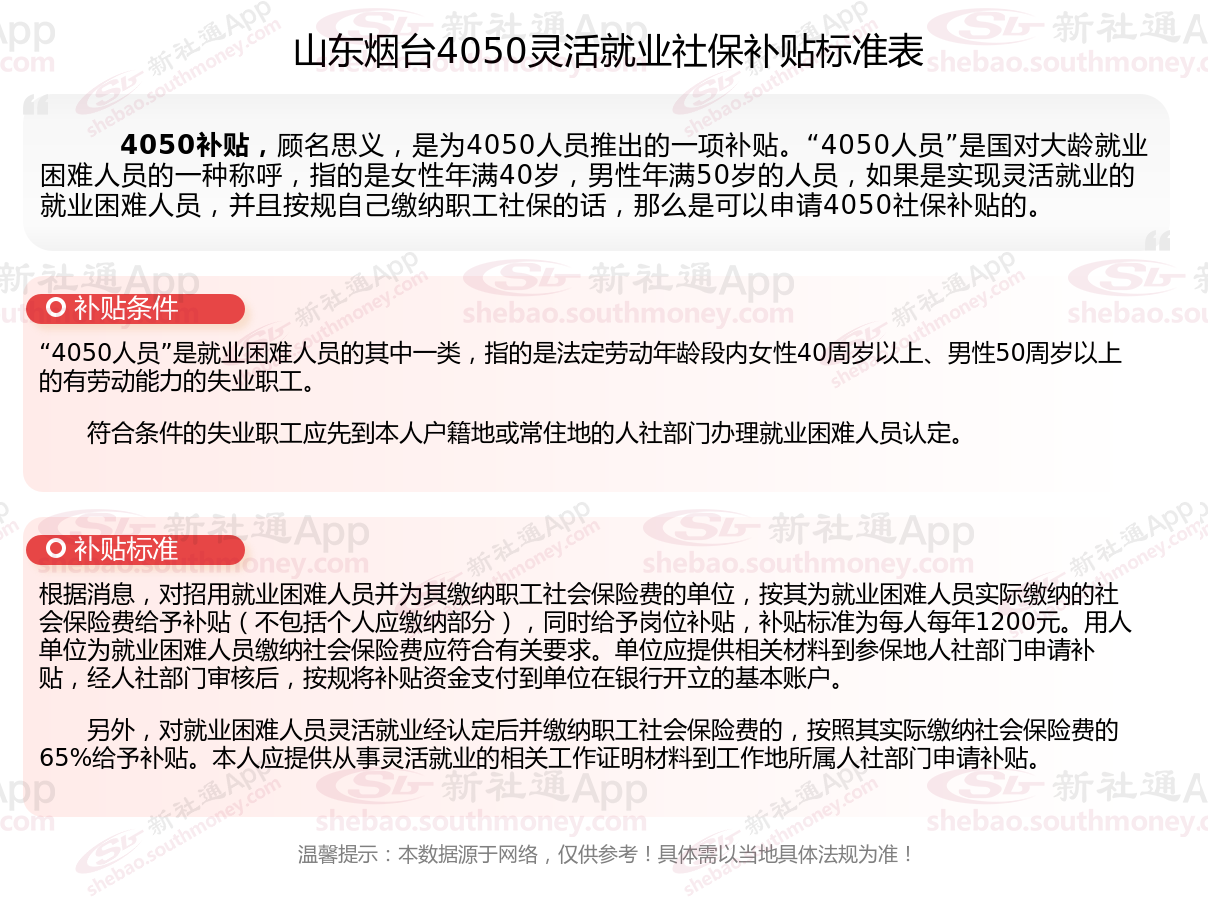 一、2025年山东烟台4050社保补贴标准是怎么样的,附领取条件