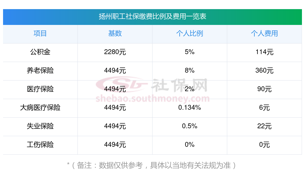 扬州职工社保缴费多少钱一个月?