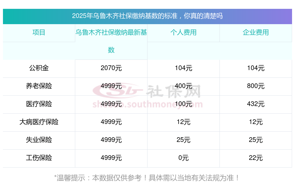 据新社通app显示,乌鲁木齐社保缴费基数2025最新标准如下: