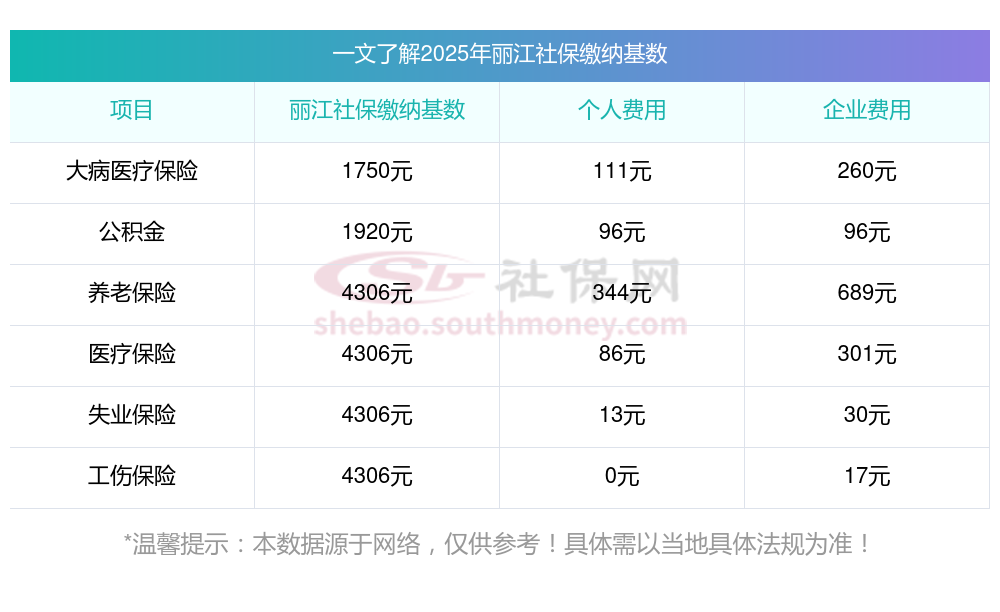 (1)据新社通app-查阅了解到,职工上一年度1月至12月的全部工资性收入所得的月平均额,会被用来确定社保基数,而该基数用于计算社会保险费缴纳的工资基数。 目前该丽江社保的缴费基数为:4306.20,个人费用约为:344.496元,企业费用约为:688.992元。