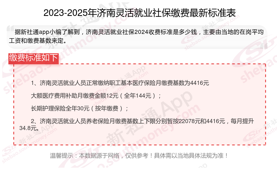济南灵活就业人员基本养老保险缴费基数暂按不低于4416元;