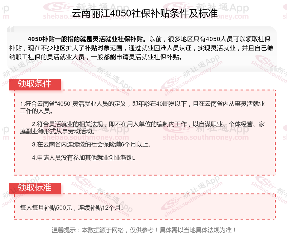 二、云南丽江4050社保补贴标准及条件2025年最新消息