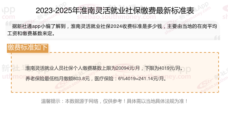 二、2024年淮南灵活就业社保缴费标准是多少钱,最新如下: