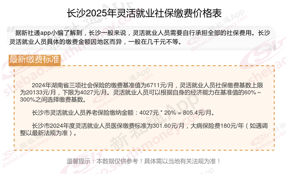 一、2024年长沙灵活就业社保缴费标准表 长沙灵活就业社保多少钱一个月?