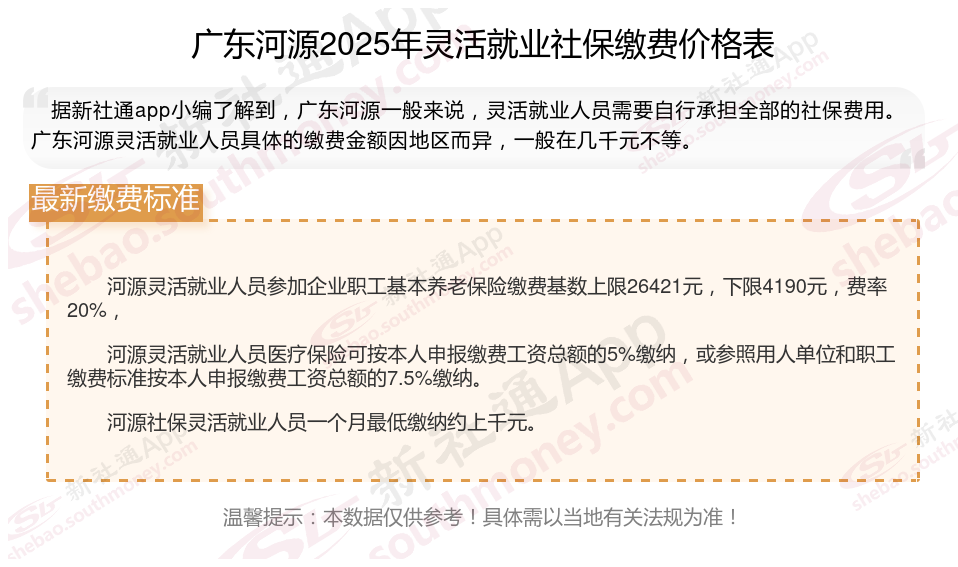 一、广东河源2025年灵活就业社保缴费基数及比例