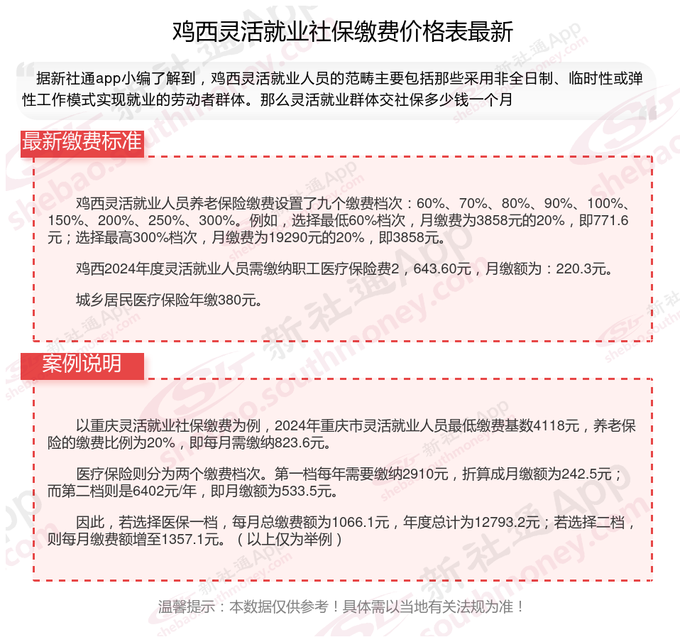 二、鸡西2025年灵活就业社保缴费基数及比例