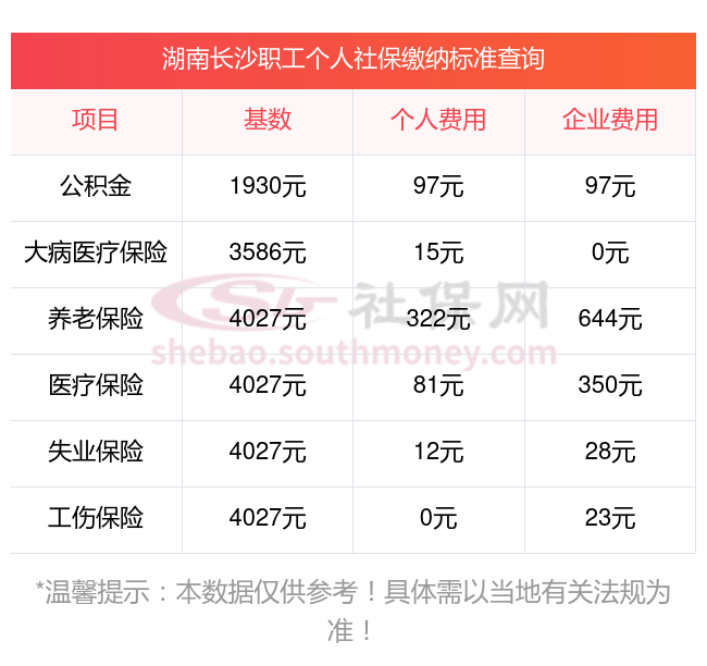 据新社通app显示,湖南长沙社保多少钱一个?湖南长沙社保公积金缴费基数为:3579.00元?,湖南长沙社保费用如下: