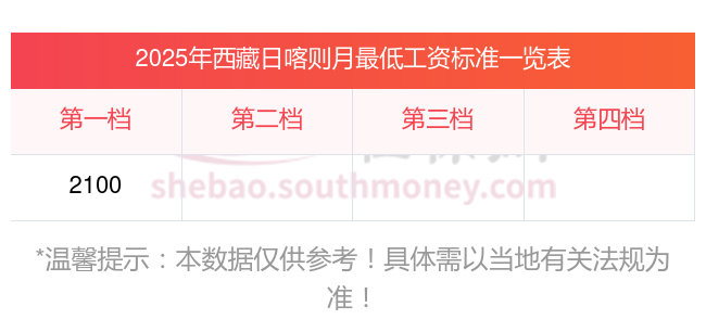 西藏日喀则最低工资标准参考最新如下:
