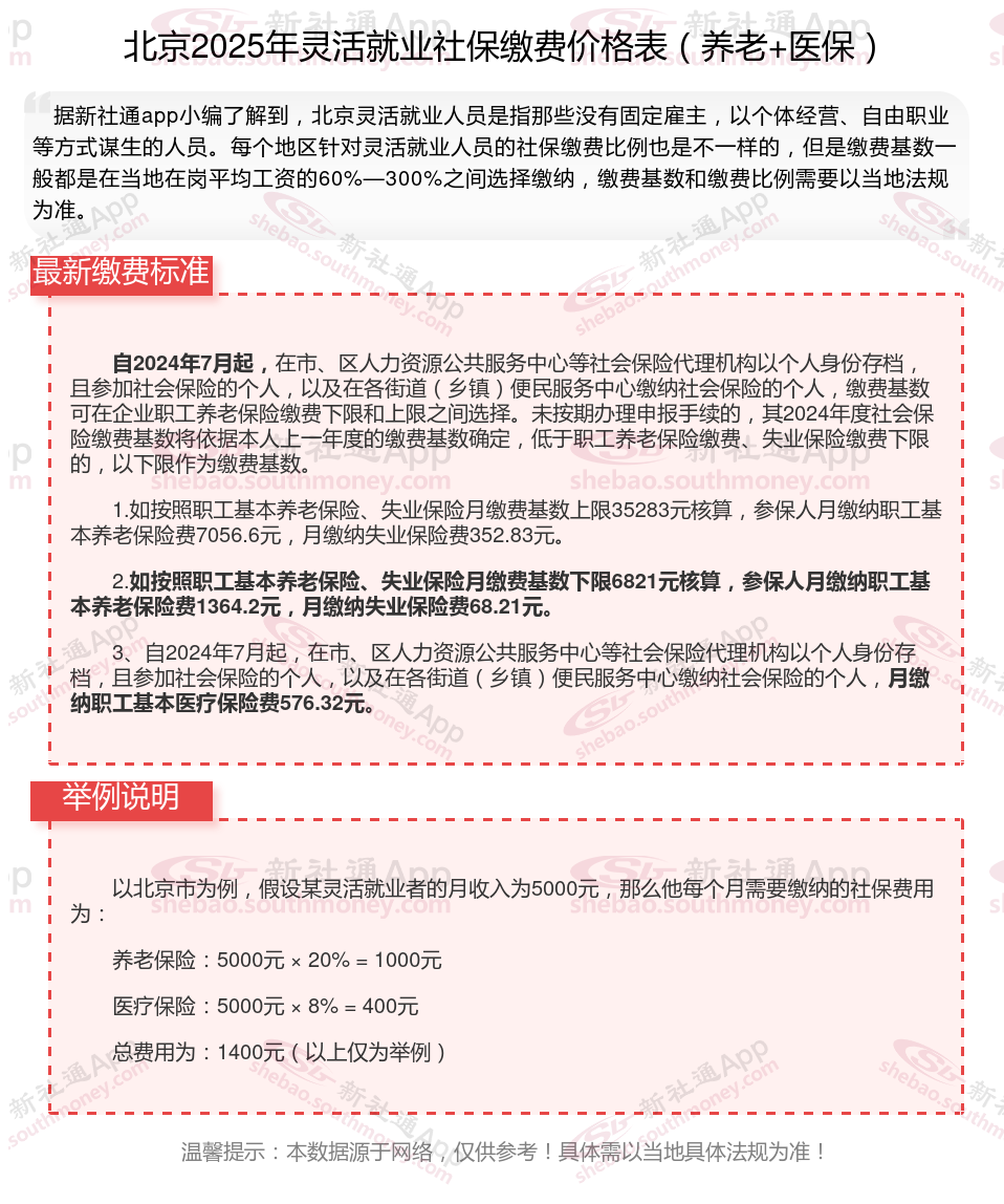 二、2025年北京灵活就业社保缴费标准表 北京灵活就业社保多少钱一个月?