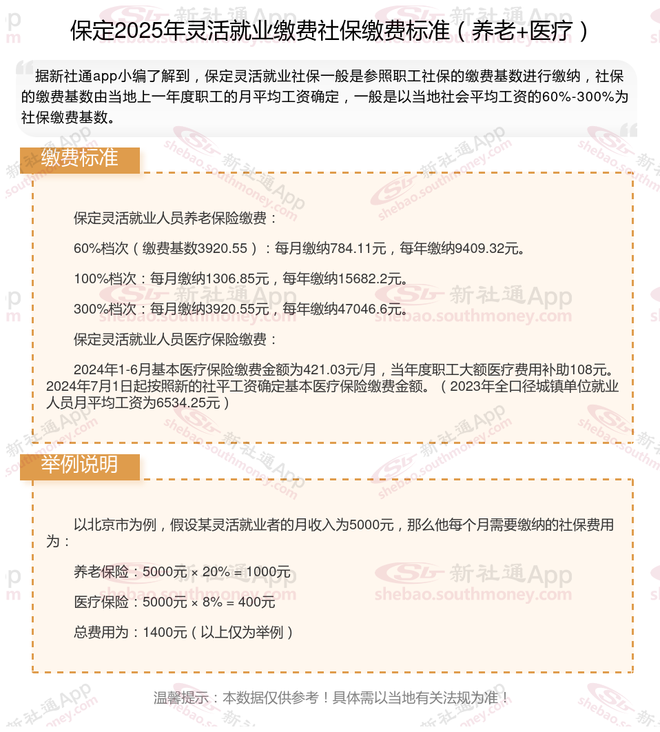 一、2024年保定灵活就业社保缴费标准表 保定灵活就业社保多少钱一个月?